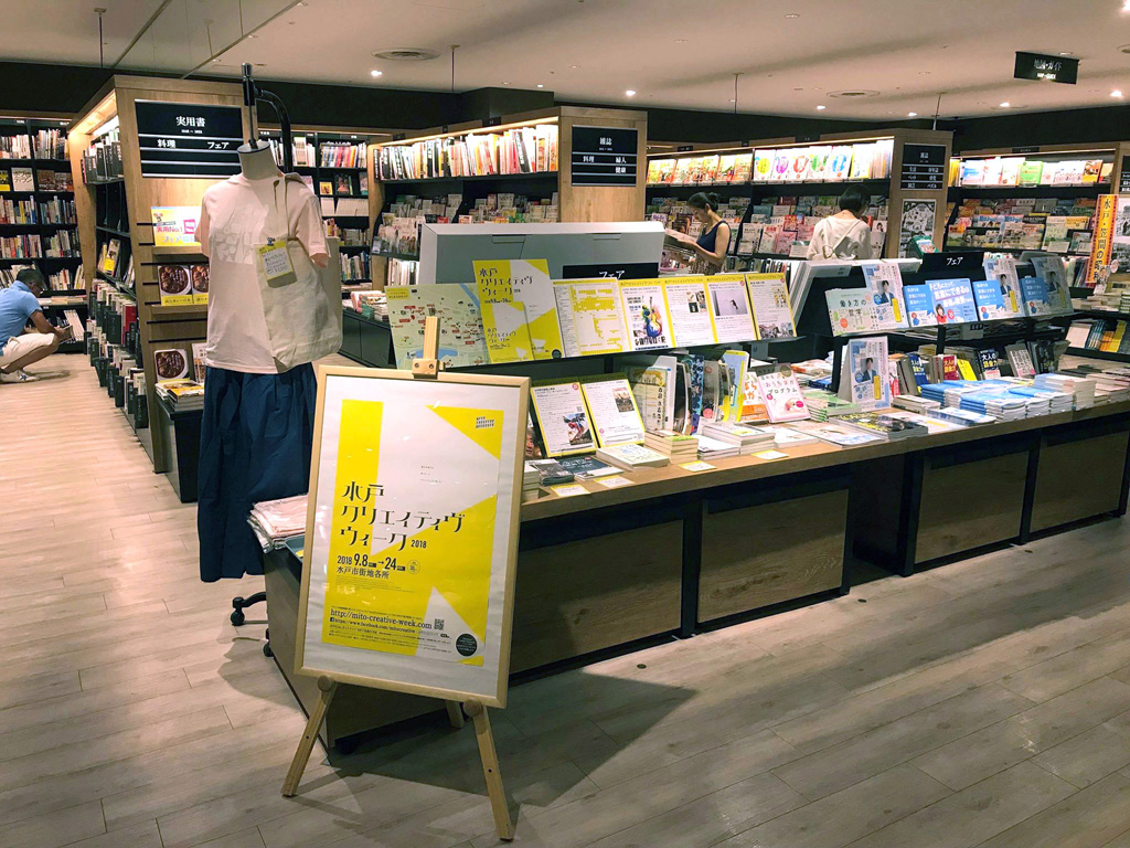 川又書店に水戸クリエイティヴウィークの関連書籍・グッズ特設コーナーが出現! 公式ガイドマップや情報パネル、チラシの設置の他、参画企画の関連書籍やグッズの販売も行います。是非情報拠点として、お立ち寄り下さい。