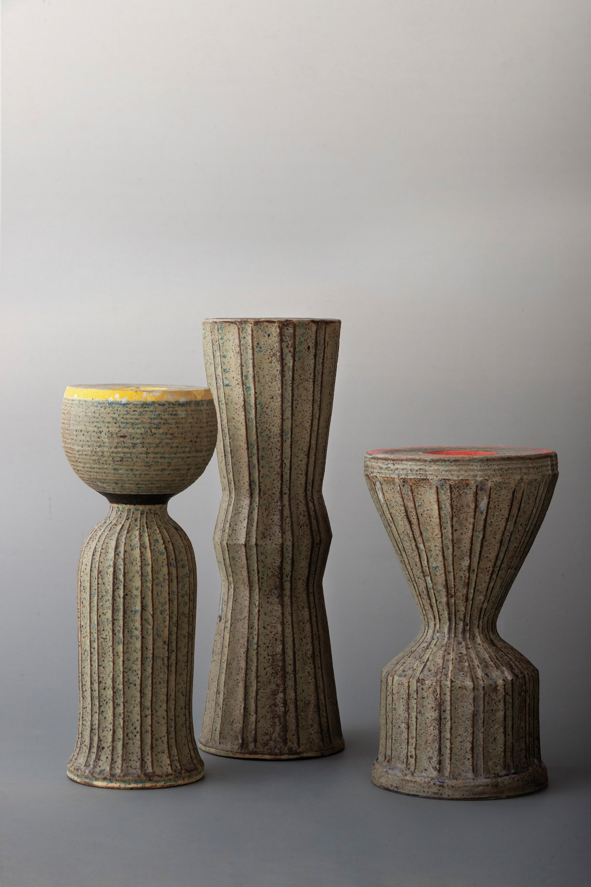 陶芸家・額賀章夫さん(笠間伝統工芸士、笠間市在住)の代表作プリーツワークシリーズは、ロクロ成形した表面に端正なシノギ彫りを施し、陶の質感により柔らかな印象を残している。個展発表を中心として海外でも幅広く活動する額賀さんの作品を、新シリーズを含めて展示する。