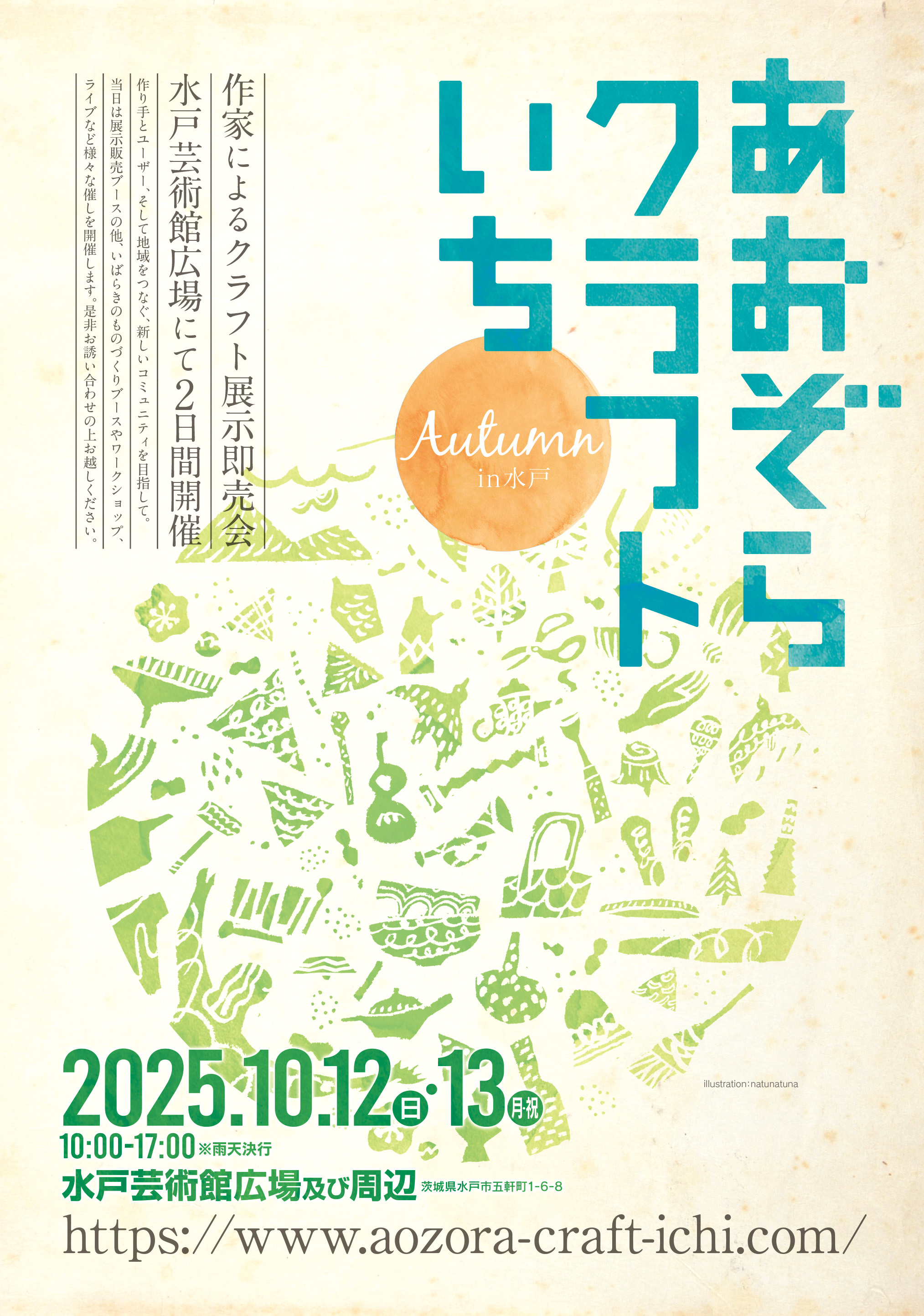 ●主催・運営:あおぞらクラフトいち実行委員会 Tel.029-255-6026 ●共催:公益財団法人水戸市芸術振興財団