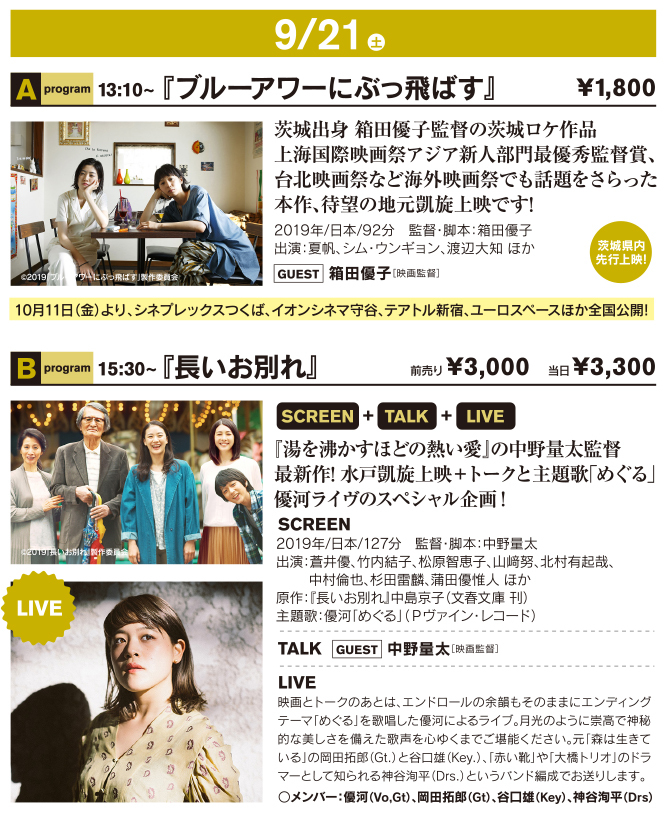 2019.9.20(金) 20:00~・22(日) 10:00~/20:00~